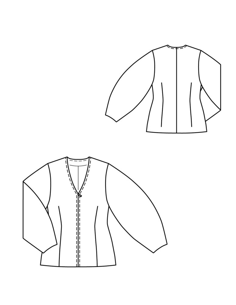 Další materiál: nažehlovací výztuha; 1 dělitelný kovový zip dlouhý pro vel. 34 – 42: 45 cm, vel. 44: 50 cm
