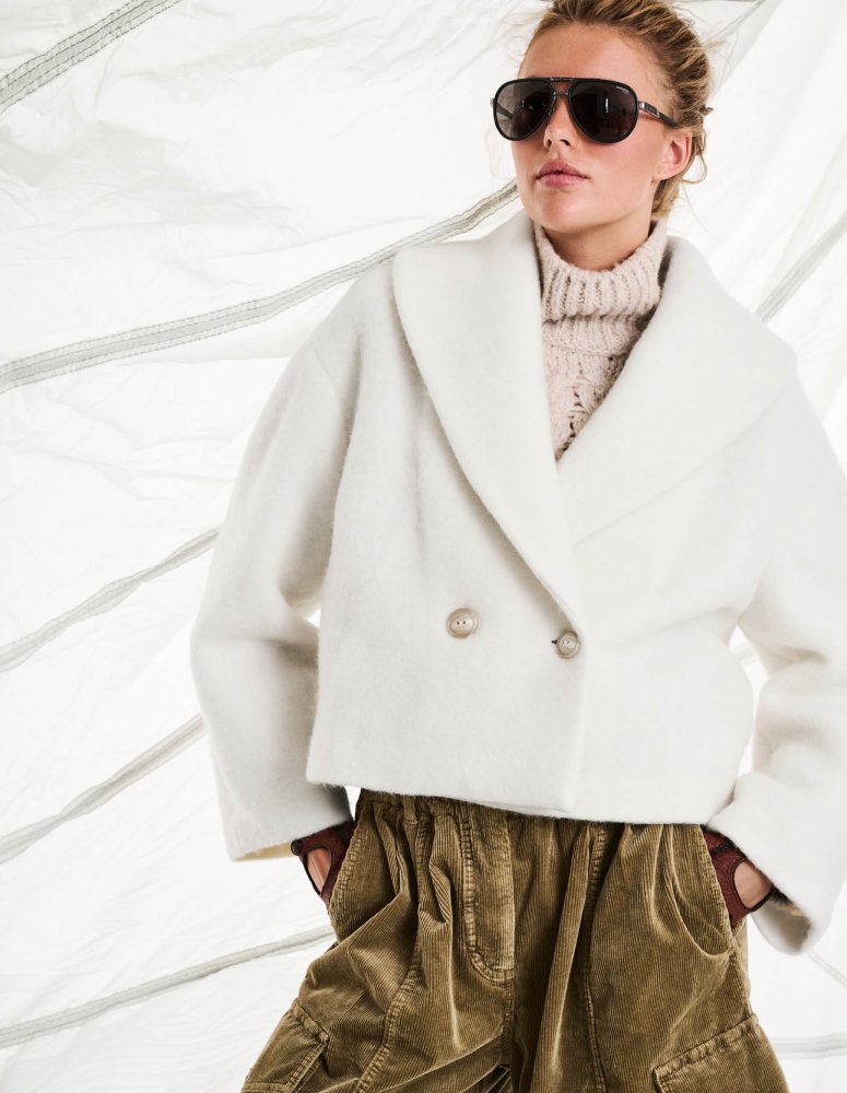 S postupně se ochlazujícím počasím přibude studených dnů a vy se určitě moc ráda zachumláte do hřejivého kabátku. Ten náš má oversize proporce, a tak se pod něj vejde navíc i teploučký pulovr. Jeho objemnost trochu opticky mírní dvouřadé zapínání.