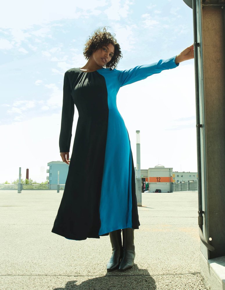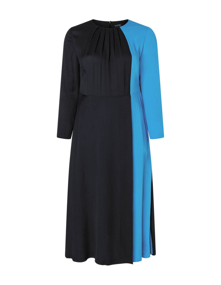 Zeštíhlující účinek je jen jedním z bonusů atraktivních dvoubarevných šatů, které v oblasti pasu lichotivě obepínají postavu. Na lehce přiléhavý živůtek navazuje postupně se rozšiřující sukně v mididélce, což jen zintenzivňuje jejich ženskost. Snadné oblékání zaručuje šedesáticentimetrový skrytý zip.